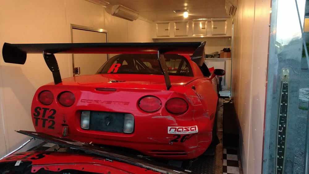 The wing itself has minor repairable damage, but all the mounts need to be replaced. Seeing how far all the aluminum bent, it's quite a testament to the strength of properly made carbon fiber parts. Thanks to Kognition Racing for making a solid wing! AMT Motorsport will be making all new mounting hardware milled from carbon fiber plate this off season, and we'll take the opportunity to move the wing a little higher and further back on the car. Car is also getting new wide fenders put on so we can run the absurdly wide 335 Hoosier A7s that have become the norm on racing Corvettes.